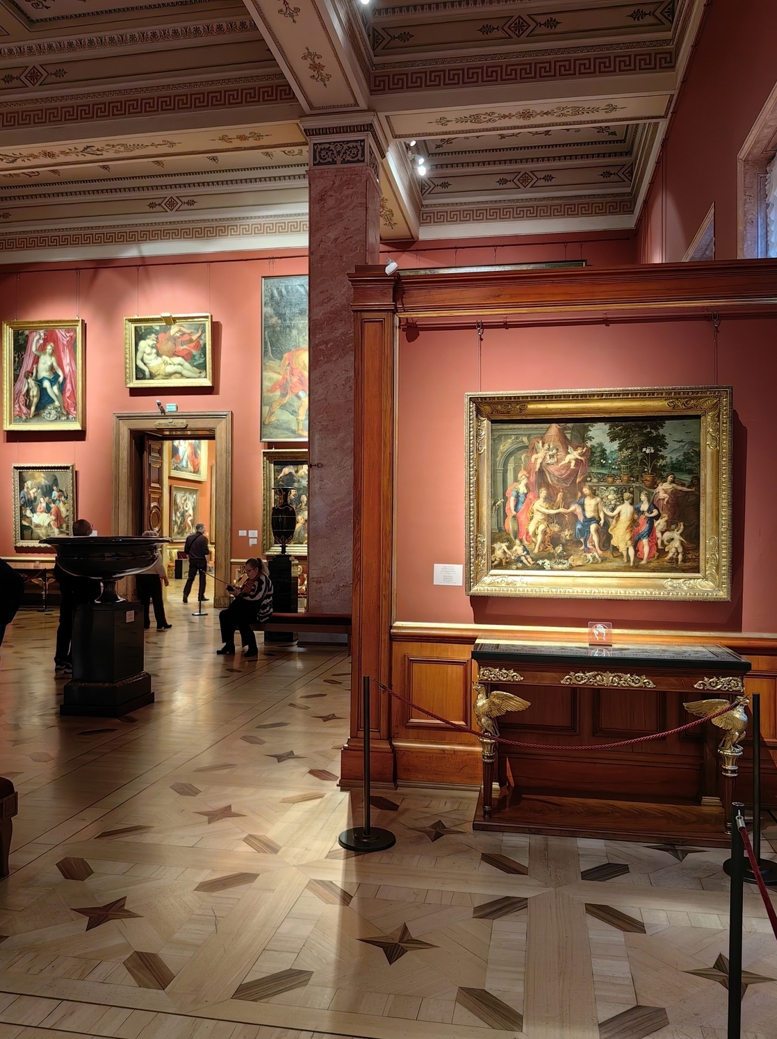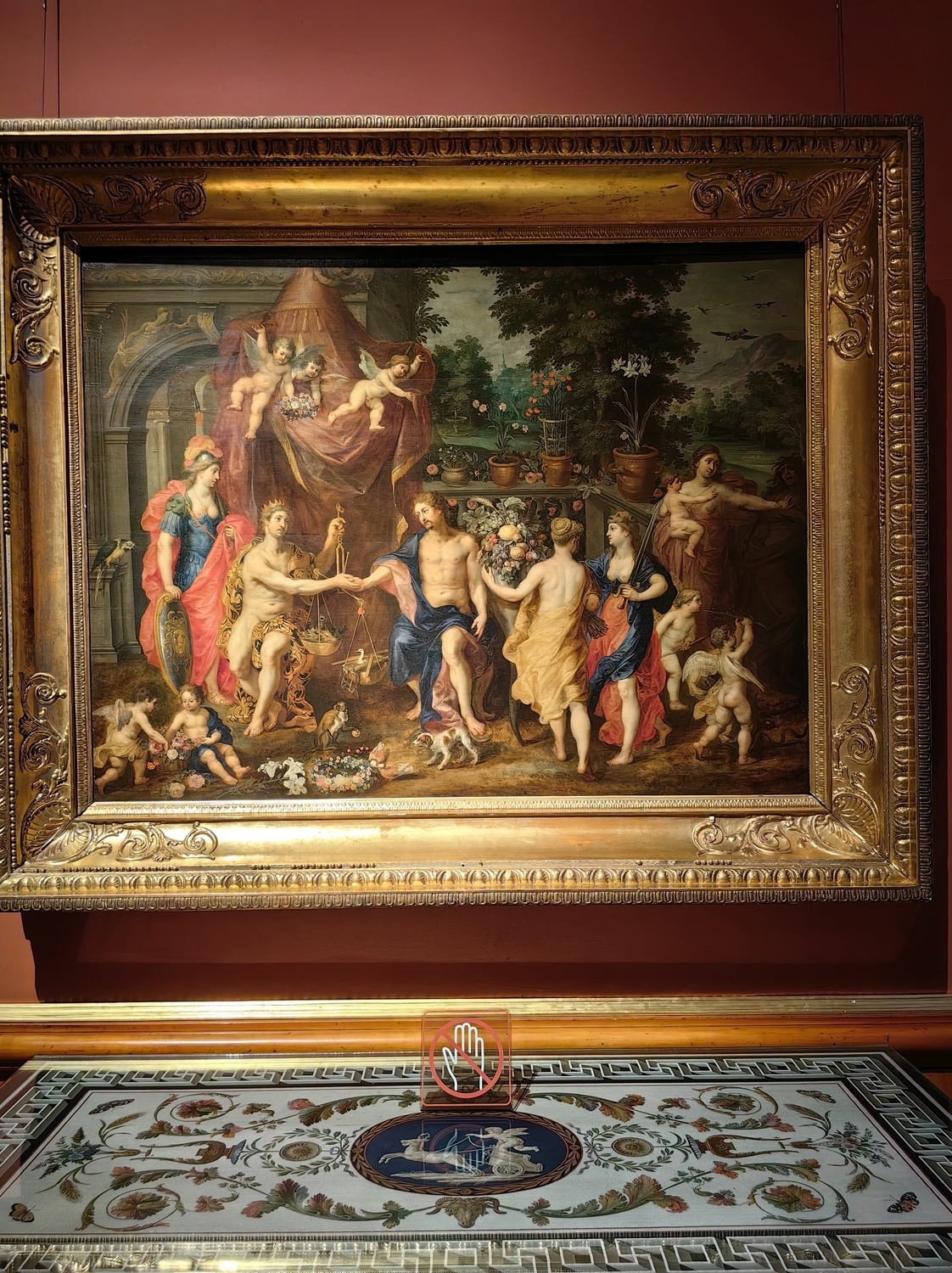 Время от времени я хожу в Эрмитаж. В Эрмитаже много экспонатов, связанных (так или иначе) с математикой. В ноябре 2025 года я долго рассматривала следующую картину, сфотографировала ее и думаю, нам с детьми будет интересно ее разобрать. Далее фотографиии мои, специально подробные, чтобы удобно было обсуждать с детьми.