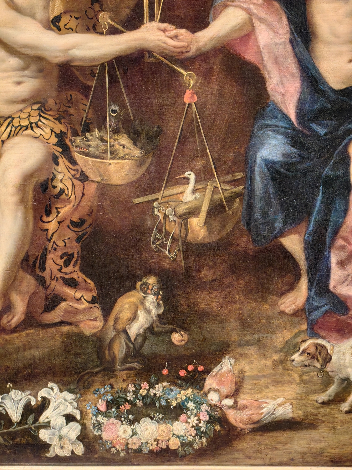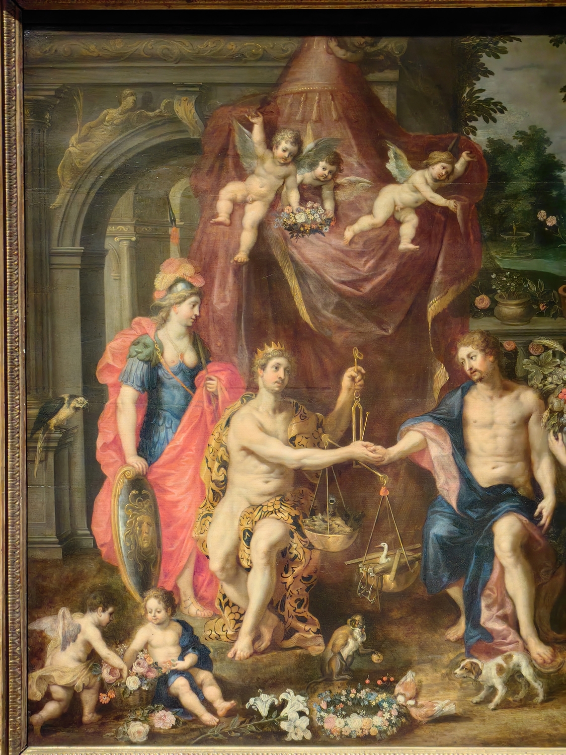 Хендрик ван Баленн - знаменитый художник, его картины были в коллекции Рубенса. В те времена была мода на аллегорическую живопись: художники рисовали картины для разглядывания и предлагали интеллектуальную игру - разгадать изображенные аллегории. Мода была всеобъемлющая, и, когда Петр I вернулся из Европы, он тоже показывал гостям картины и предлагал угадать, что сии аллегории означают.