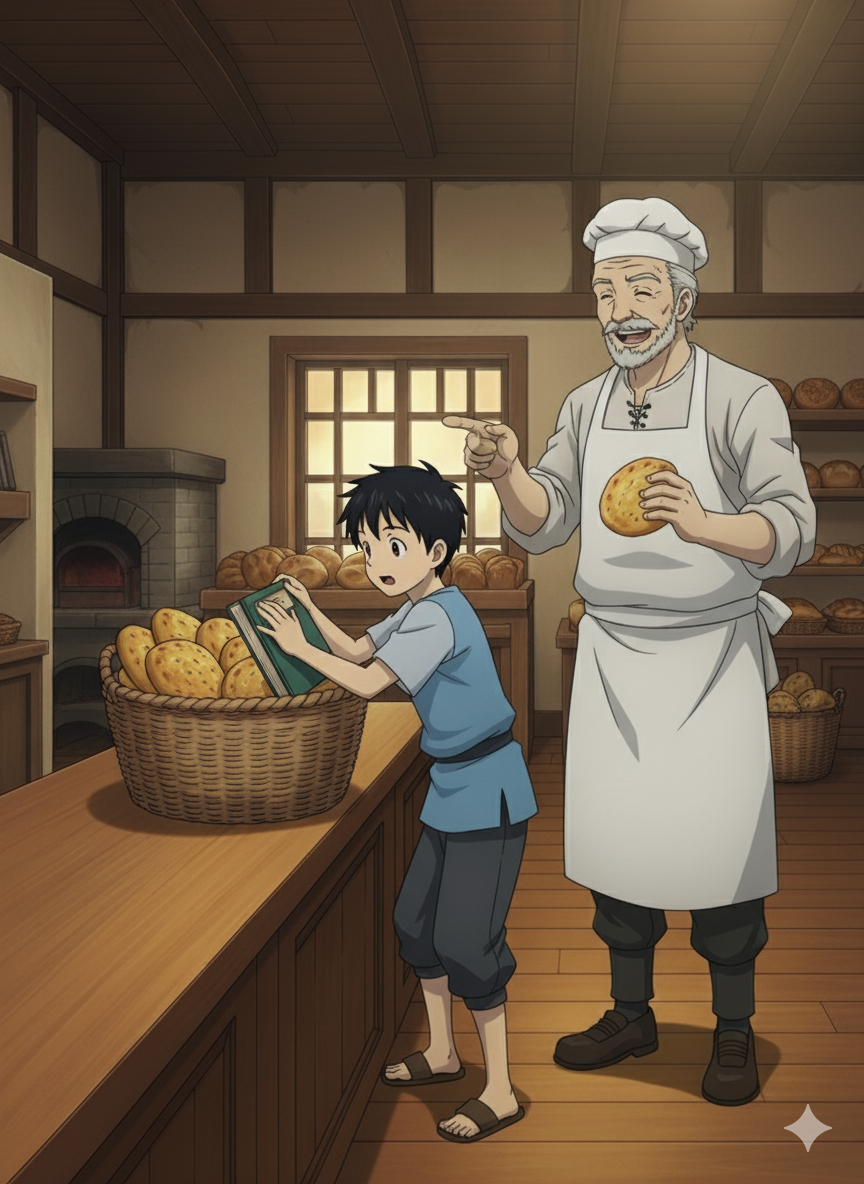 Ученик положил учебник в корзину с лепёшками. Но булочник рассмеялся: «О, мальчик, математика не насытит путника!»