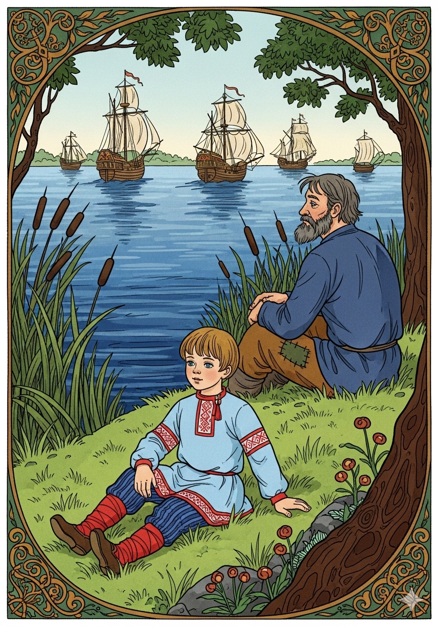 На реке стояли корабли.