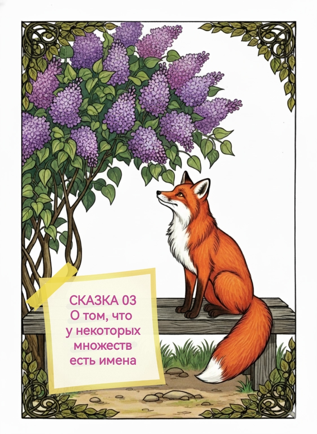 Ученик мигом сгонял в лавку, купил блокнот и карандаш, как велела лисичка. Вернувшись, он аккуратно разделил страницу пополам: слева — названия множеств, справа — их элементы.